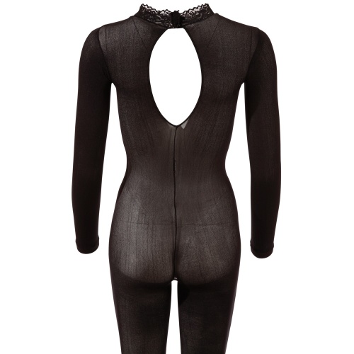 Catsuit cu maneci lungi realizat din material semi-transparent power net. Zona intima deschisa si cu guler din dantela. Cu partea pentru picioare. Moale si usor.