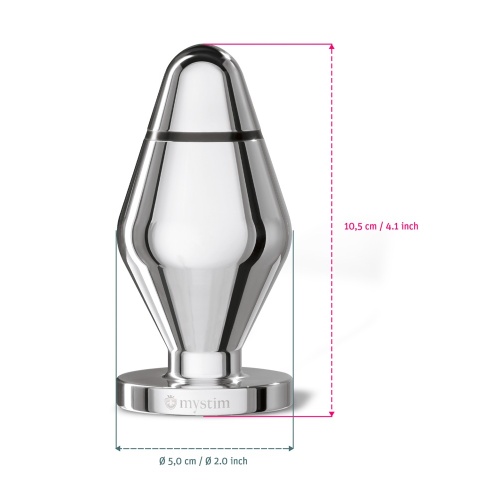 Dopul Anal din Aluminiu Pentru Electrostimulare de la Mystim este pentru dispozitivele de stimulare. Acesta este o jucărie anală grozavă datorită diametrului său de 5 cm si a impulsurilor electrice pe care le transmite. Este neted si se îngustează, astfel încât poate fi introdus cu ușurință. Cei doi poli se află în interior după doar câțiva centimetri, iar electro-stimularea poate fi simțită foarte devreme. Plăcerea furnicăturilor poate fi savurată ore întregi sau stimularea poate fi variată și intensificată pentru a atinge orgasme senzaționale. Dopul metalic poate fi încălzit pe calorifer sau răcit în frigider înainte de utilizare.