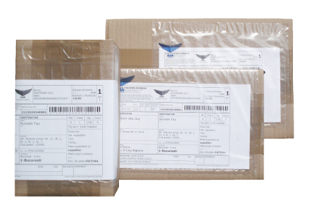 Nu exista marcaje pe spatele sau lateralele cutei. Singurele insemne sunt eticheta cu adresa de livrare, care arata ca in imaginea de mai jos.