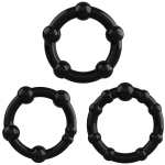Crushious Set de Trei Inele cu Bile Negre din Silicon pentru Penis si Testicule Erectii Lungi si Puternice