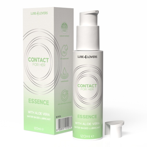Descoperă plăcerea unei lubrifieri naturale și delicate cu Lube4Lovers Contact pentru Ea Esenta Lubrifiant Vaginal, lubrifiantul vaginal pe bază de apă din linia Contact For Her, îmbogățit cu extract de Aloe Vera. Datorită proprietăților sale calmante și hidratante, acesta reduce eficient frecarea, garantând un confort optim și o senzație de catifelare a pielii, chiar și în zonele cele mai sensibile. Formula sa ușoară și inodoră se îndepărtează cu ușurință și este complet compatibilă cu prezervativele din latex.