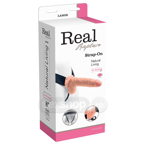 Senzatia Aerului este un vibrator strap-on cu forma realista, scobit in interior, care include cateva vene foarte excitante si testicule. Acesta iti va permite sa porti un strap-on elastic rezistent cu curele, extrem de usor pe piele, de parca ar fi aer. Asa ca te poti concentra pe sex in deplin confort, libertate si siguranta. Extaz Real: lasati-va purtati pe aripile concrete ale realismului!